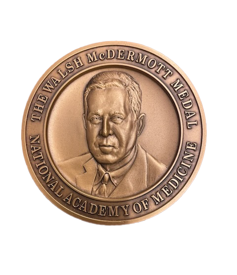 The Walsh McDermott Medal honors NAM members for long-standing, exceptional service to the NAM and the National Academies of Sciences, Engineering, and Medicine. Contributions may include leadership roles, committee service, review work, fundraising, or advancing NAM’s mission. Service on cross-disciplinary initiatives, such as the Committee on Human Rights or the Government–University–Industry Research Roundtable, is also recognized.