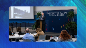 The University of Kansas Medical Center includes schools of medicine, nursing and health professions along with an NCI-designated comprehensive cancer center, an NIH-designated Alzheimer’s Disease Research Center, and a national Clinical and Translational Science Award consortium. We partner with the University of Kansas Health system, a separate entity, to advance the well-being of our campus community. (Photo Caption: Executive Vice Chancellor Robert Simari, MD, delivered opening remarks at the inaugural, campus-wide Well-being conference at the University of Kansas Medical Center, March 2023.)