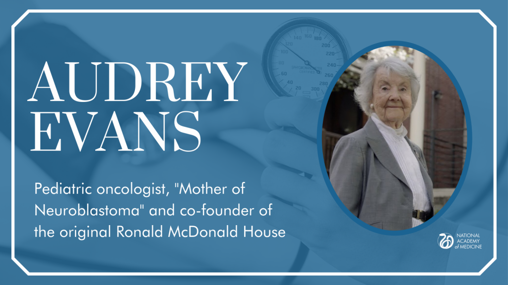 Audrey Evans (1925-) is a co-founder of the Ronald McDonald House, which provides housing to families of critically ill children receiving treatment. She developed the Evans Staging System for neuroblastoma & lowered the mortality rate of the disease by about 50%.