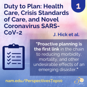 #1. Duty to Plan: Health Care, Crisis Standards of Care, and Novel Coronavirus SARS-CoV-2